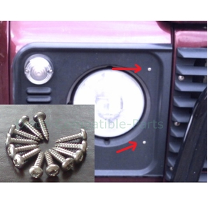Product Name: Land Rover Defender Headlight Surround Stainless Steel Screws Kit contains : 12 x A2 stainless steel screws Suitable for : Land Rover Defender models 90 +110 This kit is suitable for all Defender models, on the earlier vehicles you will need all 12 ( 6 per panel ) screws on the later models will only require 4 ( 2 per panel ) |